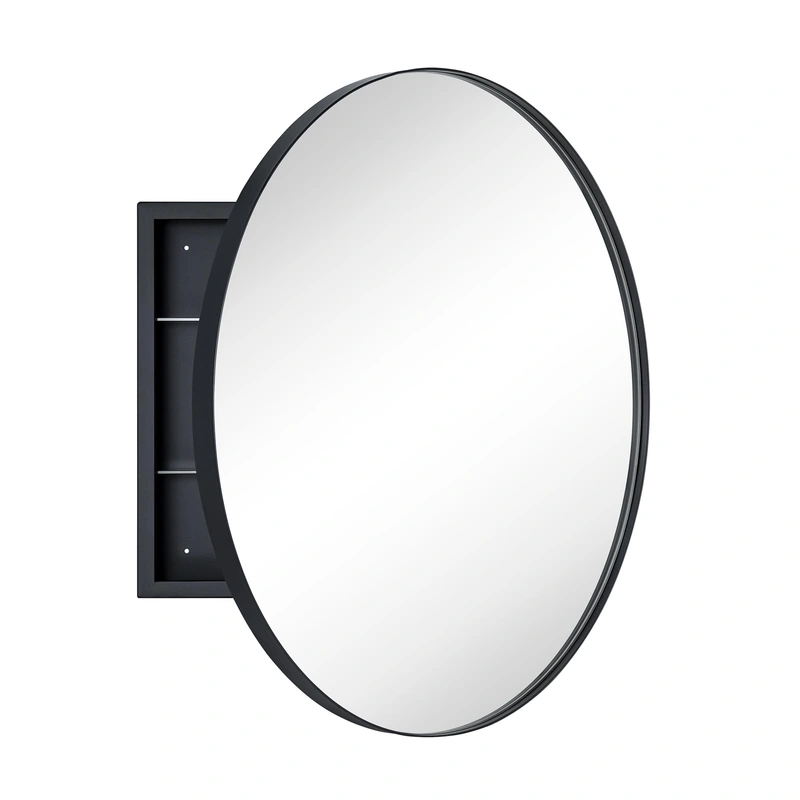 30-Inch Round Matte Black Medicine Cabinet Elevate your bathroom's functionality and style with the TEHOME 30-Inch Round Matte Black Mirrored Medicine Cabinet. Its elegant circular form and robust metal construction offer a modern, rust-resistant solution