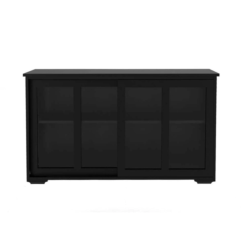 Enhance your kitchen’s elegance with the Tileon Black Kitchen Storage Cabinet. Crafted from durable E1-grade MDF and featuring stylish glass doors, this cabinet offers a spacious, adjustable interior perfect for organizing your kitchen essentials. The rustic charm and practical sliding doors make it both an attractive and functional addition to any kitchen space.
