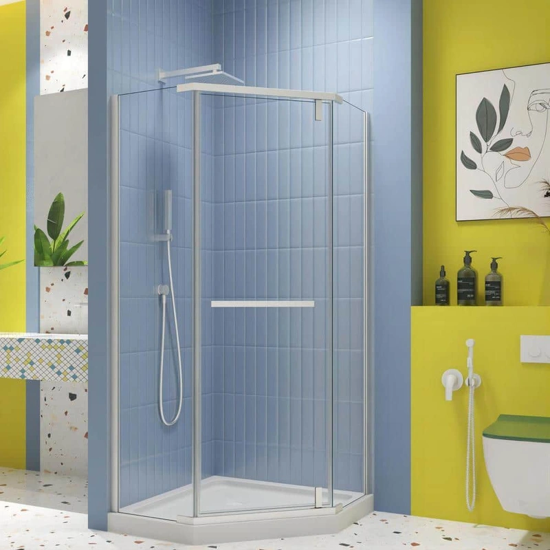 TOOLKISS Neo-Angle Pivot Shower Enclosure in White Elevate your bathroom with the TOOLKISS Neo-Angle Pivot Shower Enclosure, featuring a semi-frameless design and clear tempered glass. Designed for durability and elegance, this shower enclosure offers vers