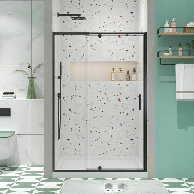 The TOOLKISS Pivot Shower Door transforms your bathroom into a sanctuary of minimalist charm, where every detail speaks to high-end design. Its standout featurea bold black anodized aluminum frameadds striking contrast against the clear tempered glass, creating visual harmony. Opt to style this door within a monochromatic bathroom palette for a seamless, sophisticated look or play with bold tiles and fixtures to make a statement. Embrace the art of refined living with a bathroom that offers both function and flair.