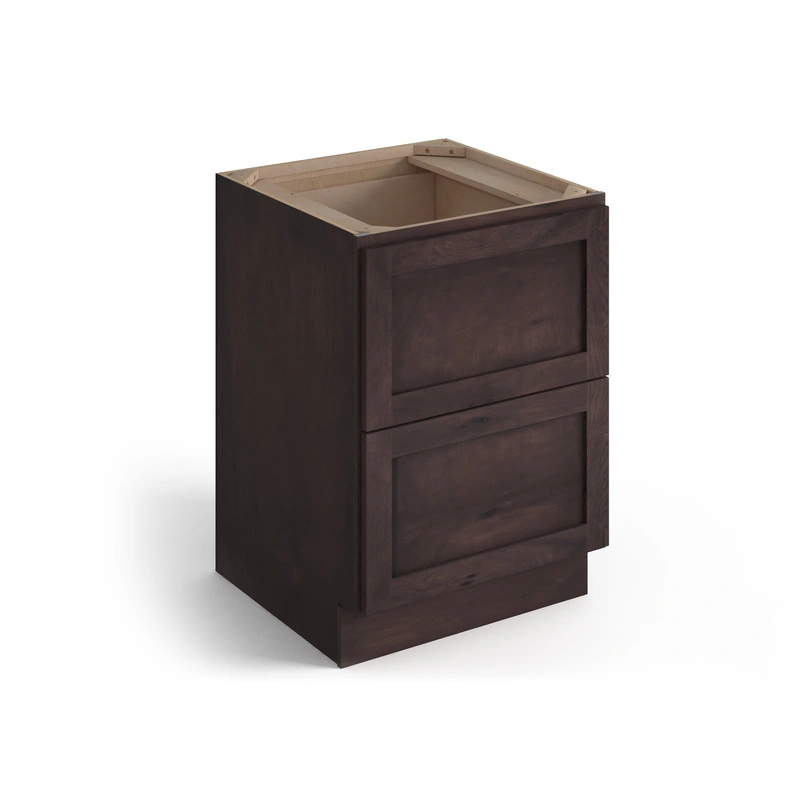 Crafted from exquisite rustic hickory, the Valleywood Cabinetry 2-Drawer Base Cabinet offers not just strength, but elegant style. With its full overlay, solid wood design, this cabinet ensures a seamless, upgraded look that complements any kitchen or workspace.