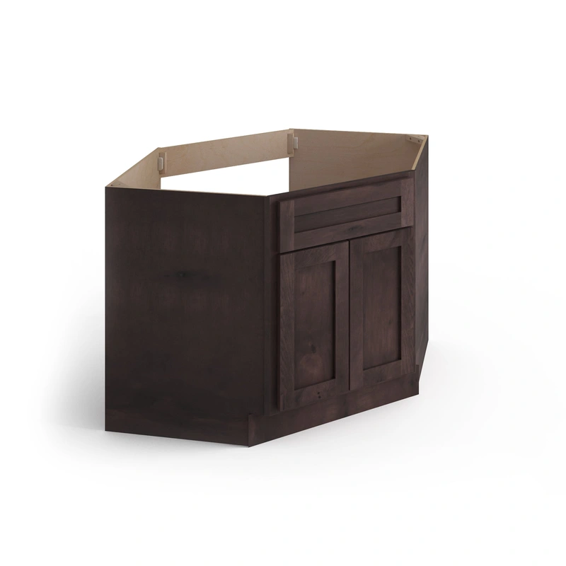 Rustic Hickory Diagonal Shaker Sink Base Cabinet Upgrade your kitchen or bathroom with the Valleywood Cabinetry 42-in Rustic Hickory Shaker Sink Base. This ready-to-assemble, plywood cabinet combines solid wood construction with a beautifully stained finis