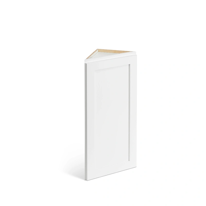 Transform your kitchen with the Valleywood Pure White Birch Corner Cabinet, featuring a luxurious flat panel shaker style. This ready-to-assemble cabinet is crafted from sturdy plywood and solid birch, offering both elegance and durability. Its space-efficient diagonal design maximizes your storage potential, making it a must-have for any modern home.