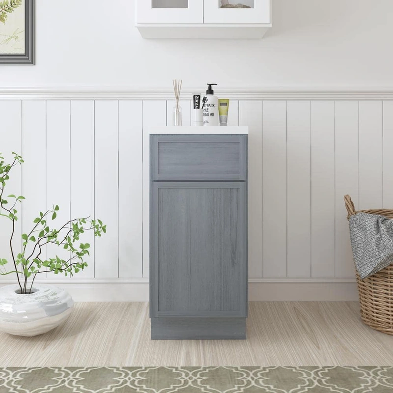 Vanity Arts Smoky Gray Bath Vanity Cabinet breathes sophistication into every corner of your bathroom, enveloping the space in modern chic. Its shaker-style design offers a classic touch that remains eternally stylish, making it the focal point of your home spa retreat. Imagine pairing its cool hues with earthy textures for a harmonious balance that feels effortlessly curated. Truly, this piece stands as an emblem of refined living, blending functionality with high aesthetics.
