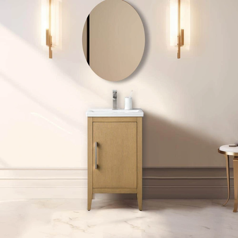 Natural Oak Single Sink Vanity The Vanity Art 20-inch Single Sink Bathroom Vanity in Natural Oak pairs refined aesthetics with robust functionality. Its ceramic top ensures a chic, easy-clean surface, while its soft-close doors and adjustable shelving allo