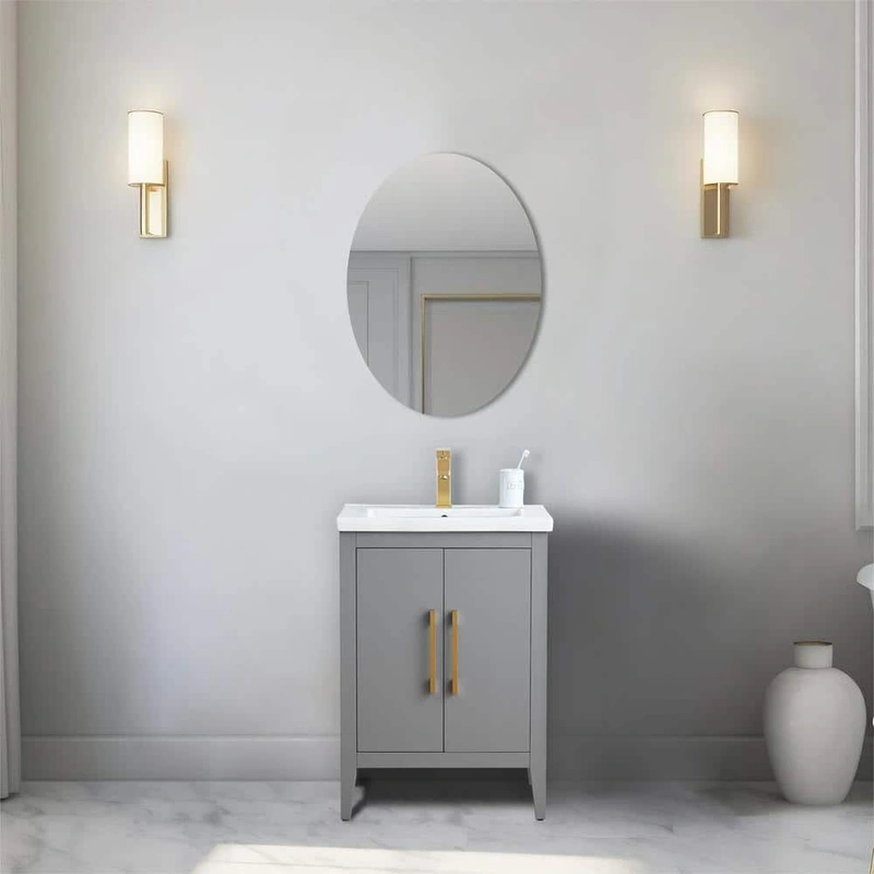 The Vanity Art 24″ Cashmere Gray Bathroom Vanity offers a sophisticated and functional upgrade for your bathroom. Featuring a durable ceramic top and undermount sink, this vanity is crafted from solid and manufactured wood, ensuring both elegance and longevity. Its modern design includes ample storage with adjustable shelves, seamlessly combining style and practicality.