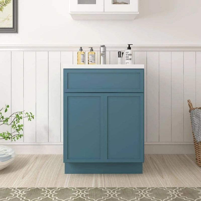 Upgrade your bathroom decor with the Vanity Art 24-inch bath vanity cabinet. Constructed from premium birch and plywood, this cabinet offers both elegance and functionality with its sea green shaker-style design, ample storage, and soft-closing doors for a seamless experience.