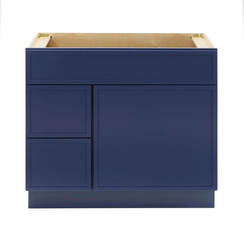 Blue Shaker-Style Bath Vanity Cabinet Enhance your bathroom with the Vanity Art 36-inch Blue Bath Vanity Cabinet, a blend of style and functionality crafted from durable birch and plywood. Designed with a timeless shaker style, this cabinet provides ample