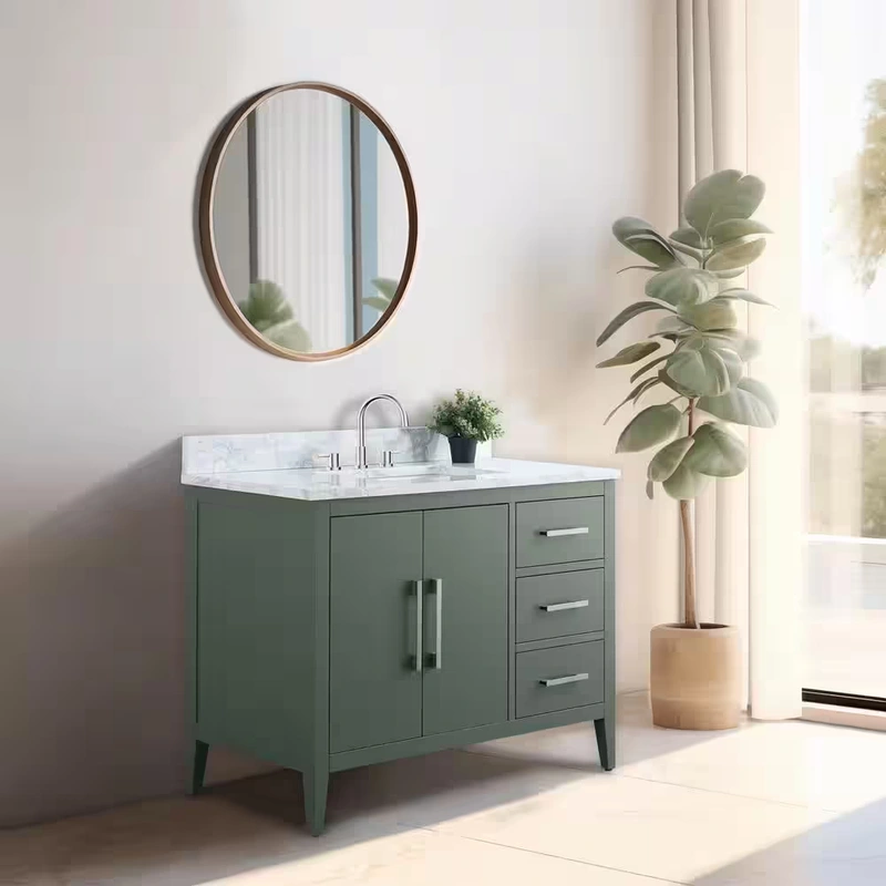 Vanity Art 42 in. W x 22 in. D x 34 in. H Single Sink Bathroom Vanity Cabinet in Vintage Green with Engineered Marble TopThis Vanity Art bathroom vanity cabinet, finished in vintage green with an engineered marble top, combines sophistication and practical