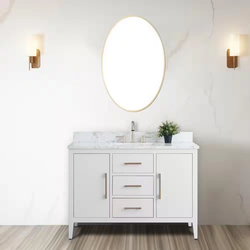 Vanity Art 48 in. W x 22 in. D x 34 in. H Single Sink Bathroom Vanity Cabinet in White with Engineered Marble TopTransform your bathroom into a stylish retreat with the Vanity Art 48" Single Sink Bathroom Vanity Cabinet. This elegant piece blends modern ae