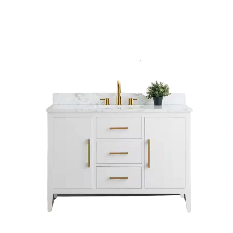 Vanity Art 48 in. W x 22 in. D x 34 in. H Single Sink Bathroom Vanity Cabinet in White with Engineered Marble TopUpgrade your bathroom with the stylish and modern Vanity Art 48-inch Vanity Cabinet. Featuring a white finish with an elegant engineered marble
