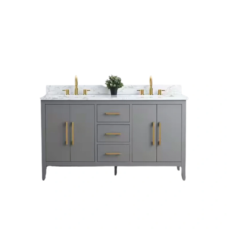 Vanity Art 60 in. W x 22 in. D x 34 in. H Double Sink Bathroom Vanity Cabinet in Cashmere Gray with Engineered Marble Top in WhiteElevate your bathroom's style and functionality with the Vanity Art 60-inch Double Sink Bathroom Vanity in Cashmere Gray. This