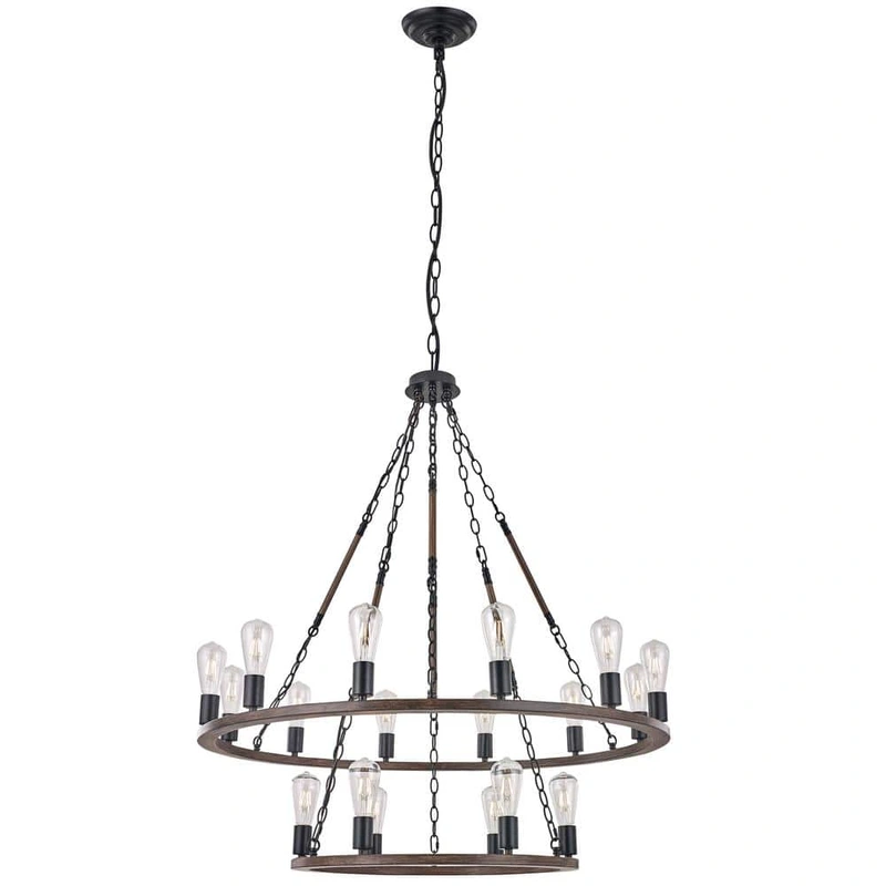 Cannes 18-Light Wagon Wheel Chandelier Elevate your space with the stunning Vanity Art Cannes 18-Light Darkwood/Black Wagon Wheel Chandelier. This exquisite two-tier design provides ambient illumination with its 18 light sources, perfect for dining rooms,