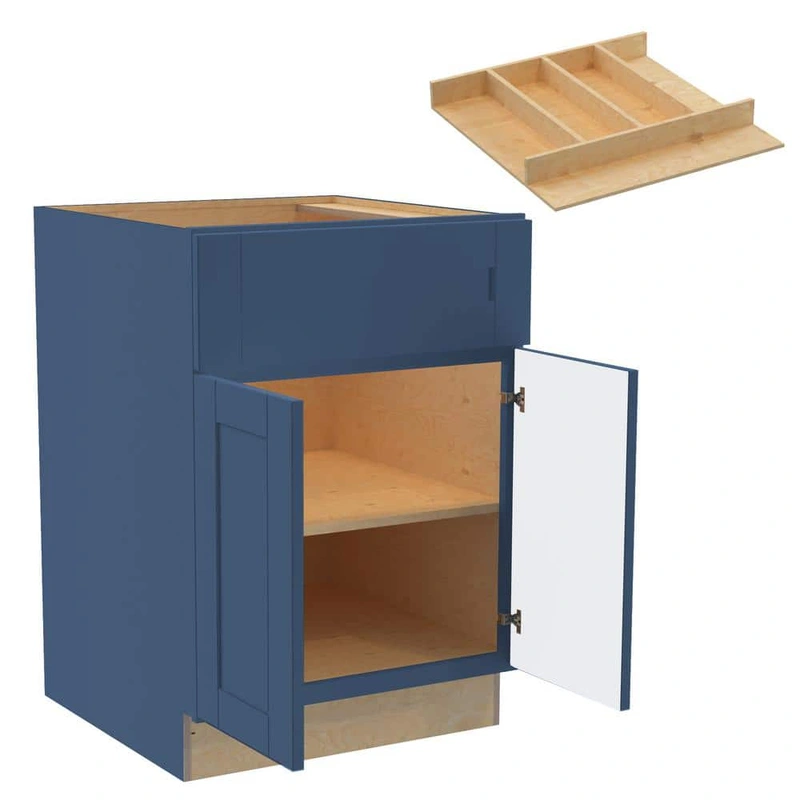 Washington Vessel Blue Base Kitchen Cabinet 24 in. Elevate your kitchen's elegance with the Washington Vessel Blue Base Kitchen Cabinet from Home Decorators Collection. This shaker-style cabinet is crafted with durable plywood and finished in a sophisticat