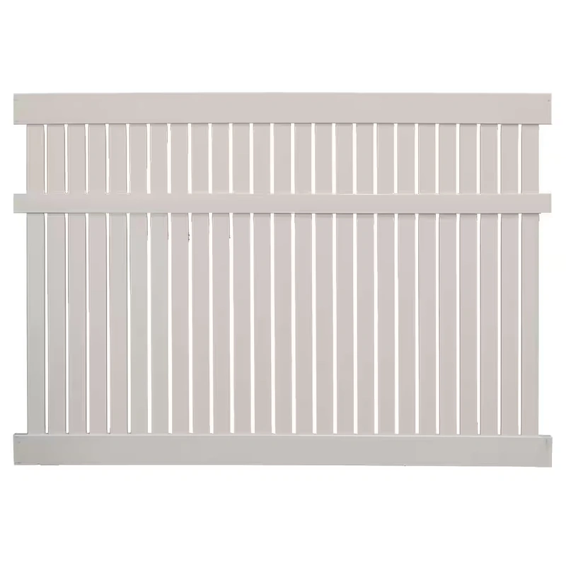The Weatherables Huntington Vinyl Fence Panel Kit offers a robust and visually appealing solution for your semi-privacy fencing needs. Standing at 5 feet tall and spanning 6 feet wide, this tan-colored fence panel adds a touch of sophistication to any property. Crafted from high-quality vinyl, it is designed to endure harsh weather conditions while requiring minimal maintenance. This fence panel kit is perfect for homeowners and professionals alike, providing both style and security.