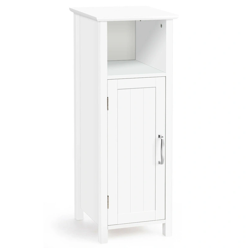 WELLFOR White Corner Linen Cabinet Maximize your space with the WELLFOR White Corner Linen Cabinet, a stylish solution for compact storage in any room. Crafted from eco-friendly MDF, this freestanding cabinet features a moisture-resistant finish, making it