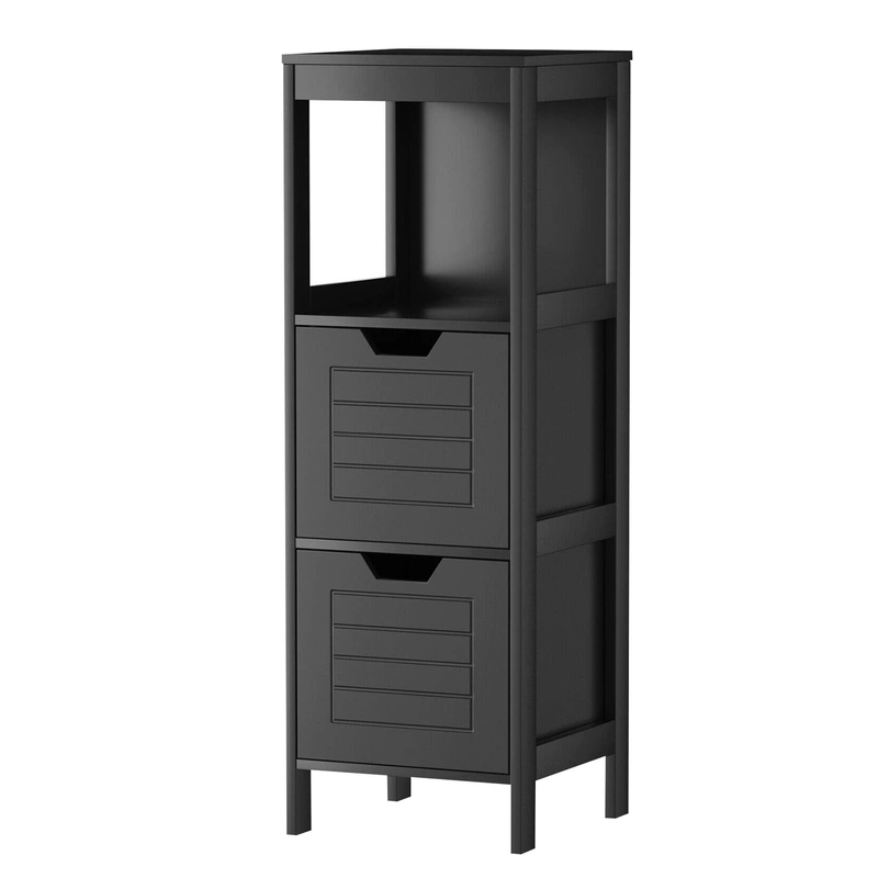 The WELLFOR Black Freestanding Corner Linen Cabinet is a sleek and stylish storage solution, perfect for optimizing space in any room. Crafted from durable, moisture-proof MDF P2 board, this cabinet neatly fits into corners while offering versatile storage with its open design and two large drawers. Its anti-toppling strap adds an extra layer of stability, making it a safe choice for homes with children or pets.