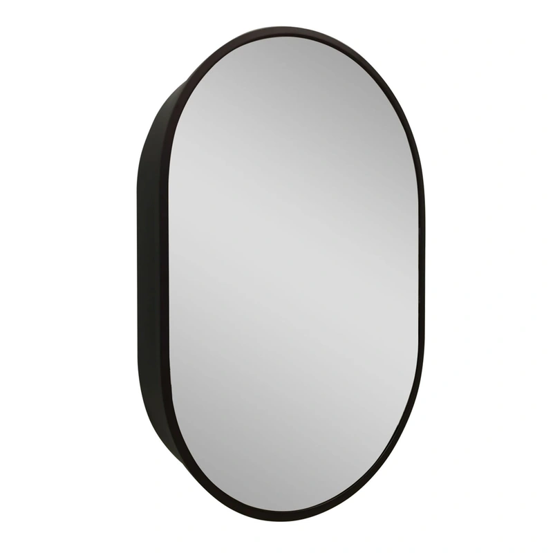 Black Oval Mirrored Medicine Cabinet Transform your bathroom with the chic and functional WELLFOR Black Mirrored Oval Medicine Cabinet. Its elegant oval design, moisture-resistant black powder-coated frame, and easy surface mount installation make it a sty