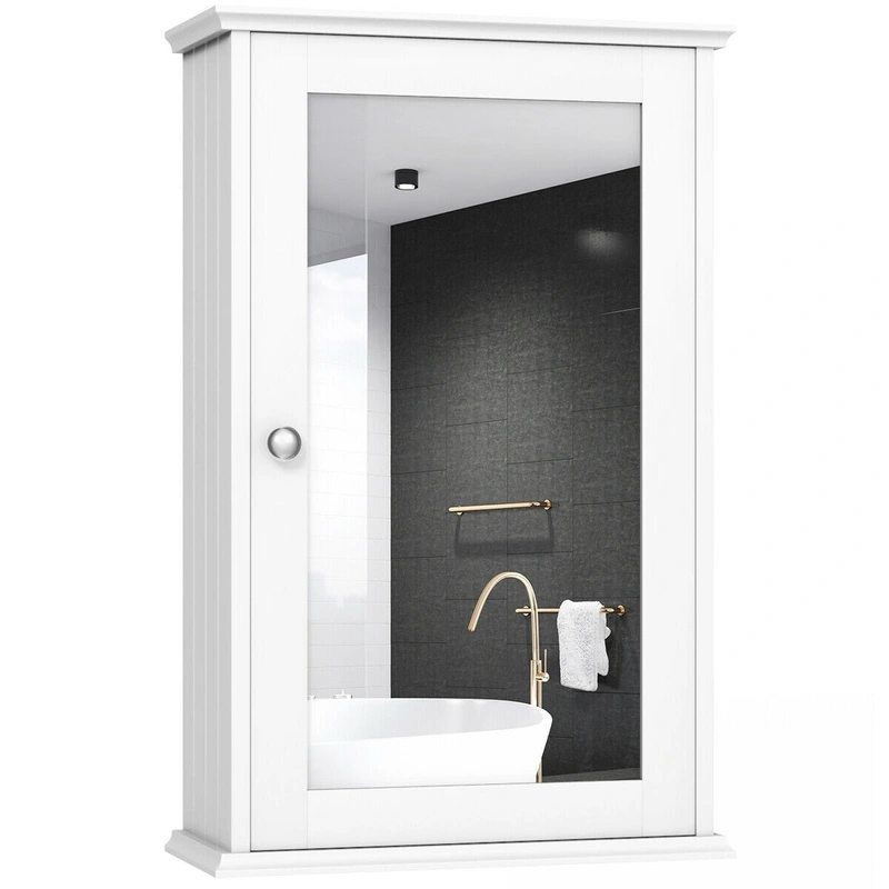 White Mirrored Medicine Cabinet Upgrade your bathroom's functionality and style with the WELLFOR CY Surface Mount White Mirrored Medicine Cabinet. This sleek cabinet maximizes space with a wall-mounted design and offers convenient mirror access for daily g