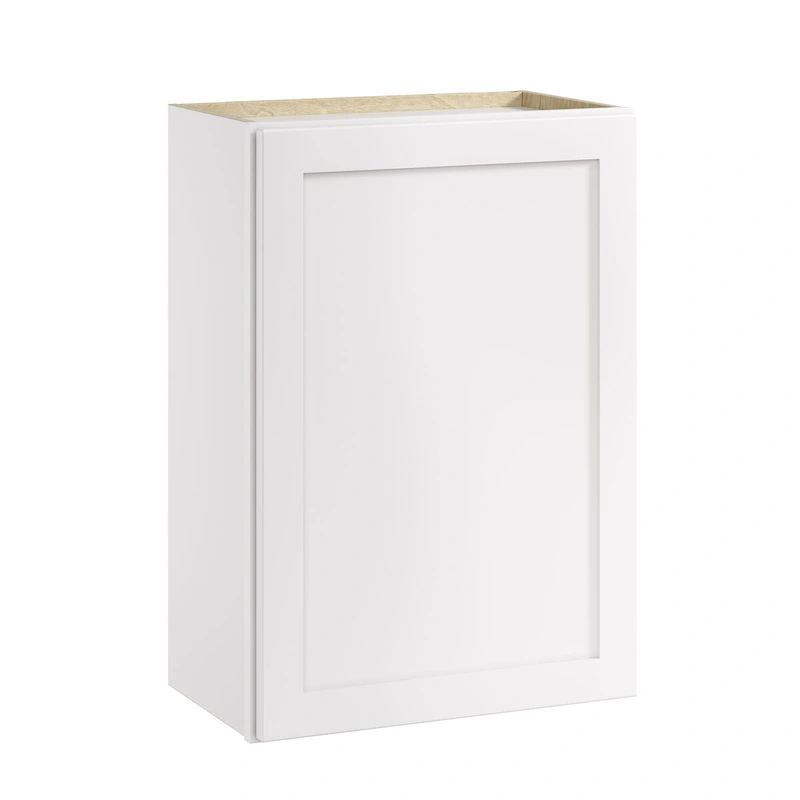 The Whalen CLICK-IT Enfield Wall Cabinet is designed for rapid assembly, making it an ideal choice for professionals and DIY enthusiasts alike. This Classic White Birch cabinet combines simplicity and style with its raised panel Shaker door, creating a versatile storage solution for any room in the home. With its premium birch plywood construction and soft-close hinges, it offers both durability and convenience.
