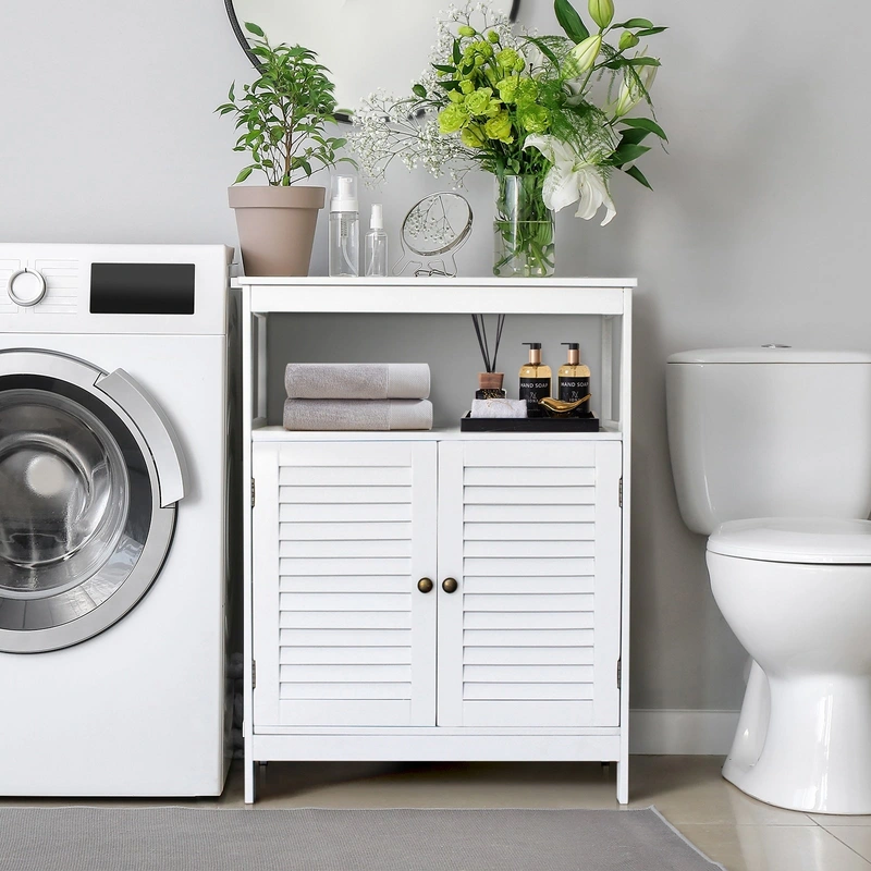The Winado Freestanding MDF Bag Organizer brings a touch of elegance and practicality to any room. Its modern louvered doors offer not only a chic design aesthetic but also functional ventilation, making it a versatile piece in contemporary interiors. Place this organizer in your bathroom for a clean, crisp look or use it to store dining essentials, adding a seamless transition from function to style. Essential for those who value both design and utility, this piece redefines sophisticated living.