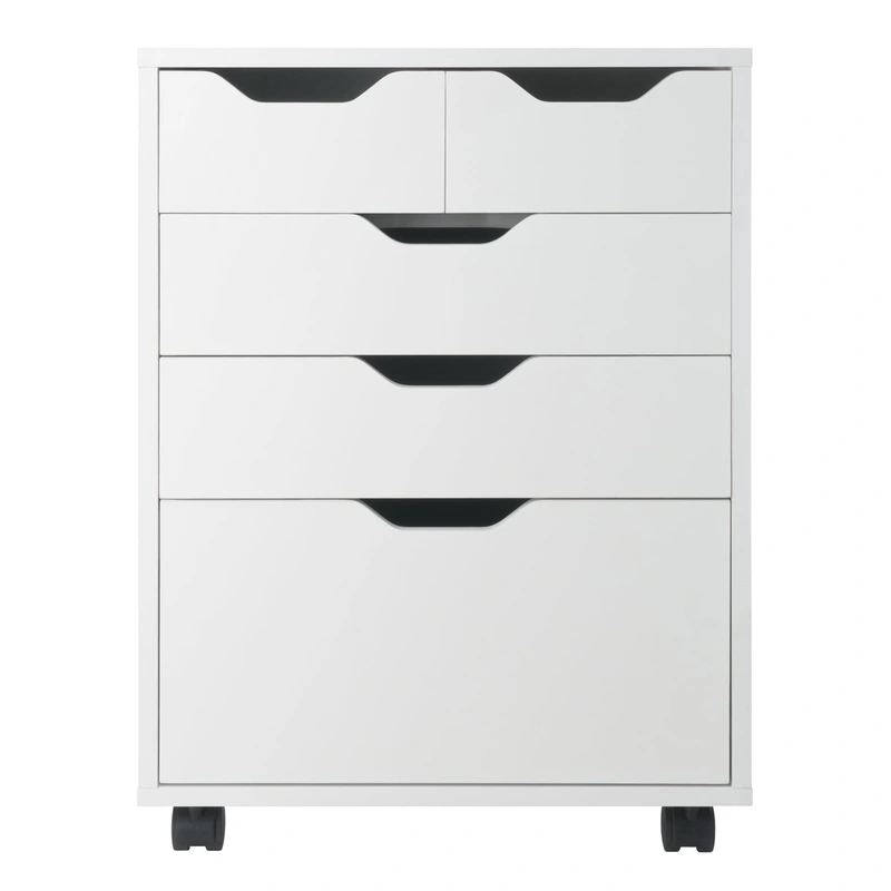 Halifax 4-Drawer Mobile File Cabinet in White This elegant and versatile Halifax 4-Drawer Mobile File Cabinet is perfect for organizing your home. Crafted from sturdy composite wood, its modern design in a pristine white finish features easy-glide drawers