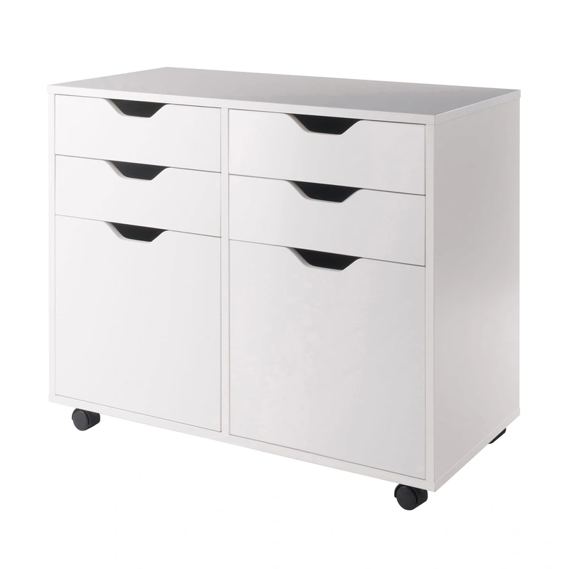 Mobile 4-Drawer File Cabinet The Winsome Wood Halifax White 4-Drawer File Cabinet maximizes your organization with style. This versatile mobile cabinet includes four easy-glide drawers and bottom cabinet storage, making it perfect for home offices, bedroom