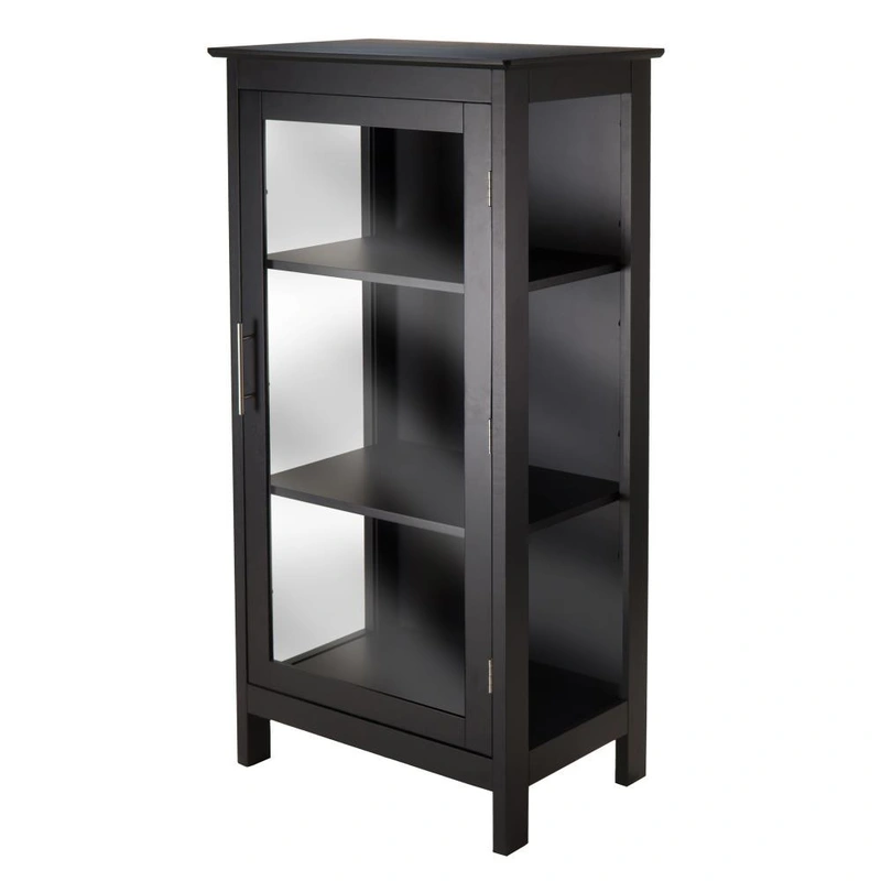 Envision your living space transformed by the Winsome Wood Poppy Curio Cabinet an epitome of modern elegance. Its striking black finish is complemented by sleek tempered glass sides, making it both minimalist and sophisticated. Imagine arranging an array of curated collectibles within its adjustable shelves, each piece telling a story of artful curation. More than just storage, it’s a statement of luxury and functionality, seamlessly enhancing your homes aesthetic with timeless charm.