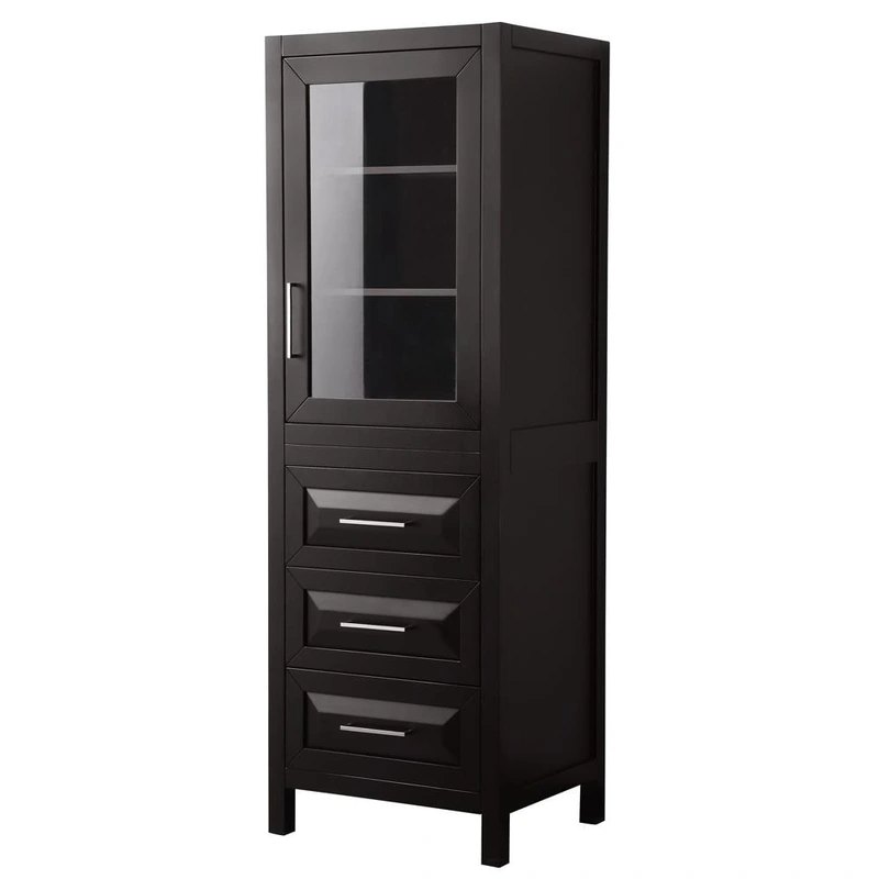 Daria Dark Espresso Linen Cabinet The Daria Linen Cabinet by Wyndham Collection is designed to enhance your bathroom with its elegant dark espresso finish and polished chrome trim. Built with environmentally friendly materials, this cabinet features ample