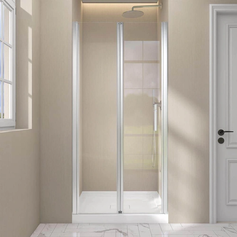 Zeafive Frameless Bifold Shower Door in Chrome Transform your small alcove shower with the elegant Zeafive Frameless Bifold Shower Door, expertly crafted in chrome with clear glass. Enjoy a spacious feel with its 180 swing pivot design, while benefiting fr